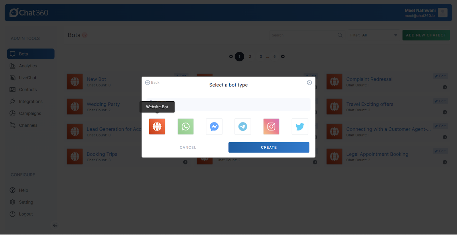 Developing a website chatbot with Chat360 is a cakewalk. Get your website chatbot now by signing up!